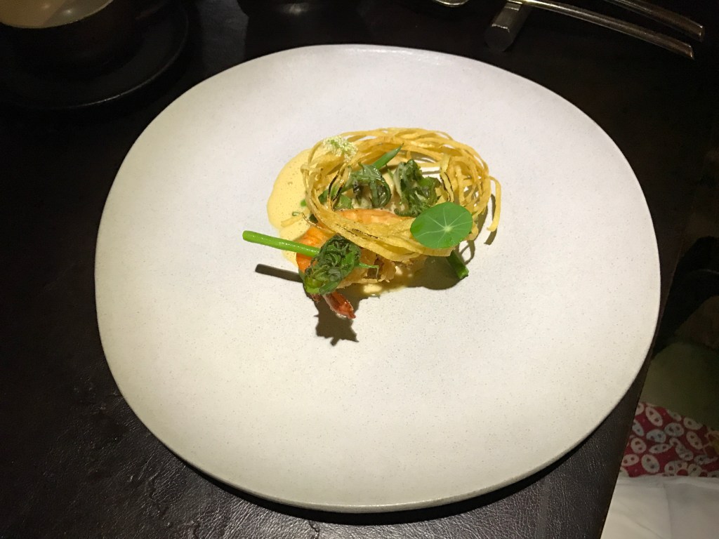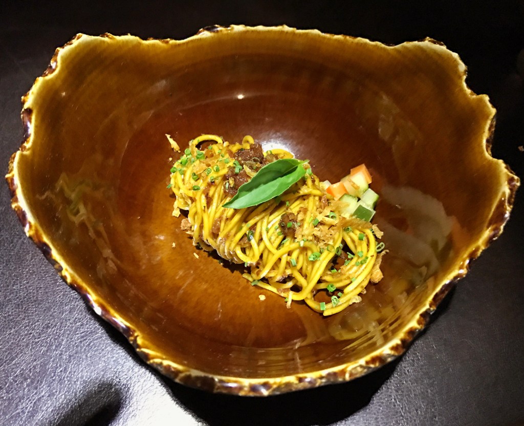 Berikutnya Dinner di Blanco Ubud. Saya harus booking dari jauh2 hari agar bisa dinner di Blanco. Sebelumnya kita harus memilih salah satu dari 3 pilihan set menu, 7 courses, 9 courses dan 13 courses. Saya mah pilih yang 7 aja. Lagian emang perut saya ga akan nampung kalau harus makan buanyak2. Saya hanya ingin merasakan sensasi makan di Blanco, hanya ingin tahu aja ๐ Ehh rupanya setiap dish yang disajikan ukurannya unyil2. Nama dish-nya sudah pasti saya lupa haha. Tapi kalau di Blanco yang paling berkesan buat saya adalah Mie Cakalangnya.. Endool surendool kalau kata Nces Nabati tea mah.