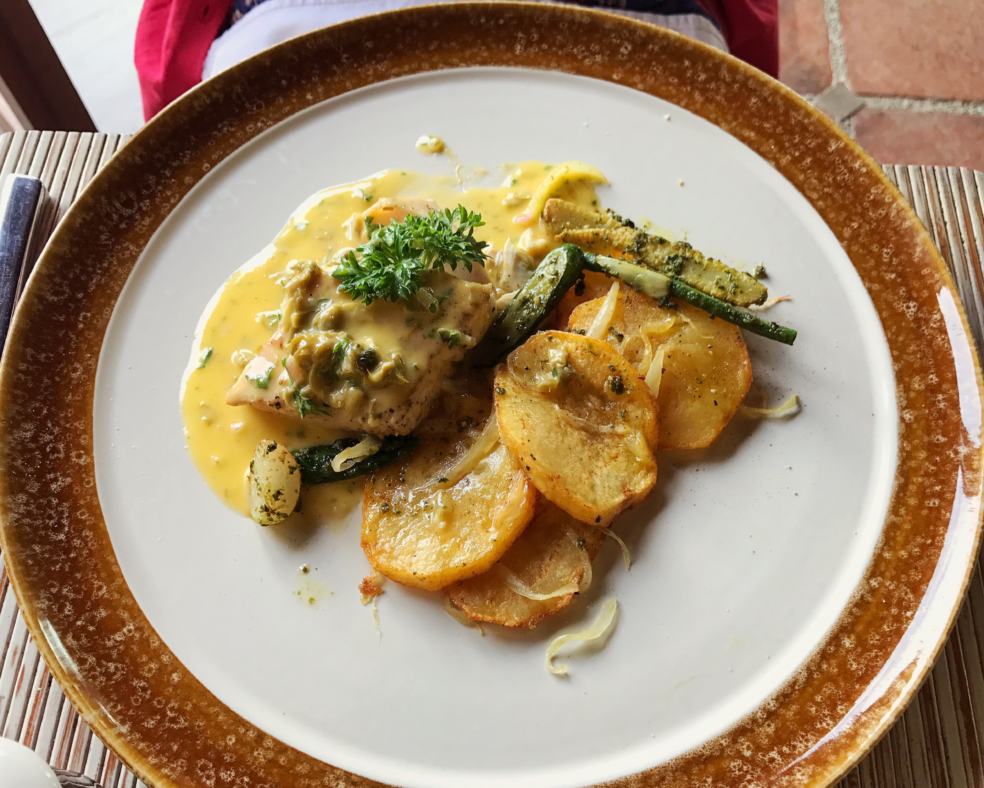 Lanjut keesokan harinya, sebelum check-in di The Seminyak Beach Resort saya mampir maksi di Standing Stones Restaurant & Beach Lounge. Masuk resto langsung harus bayar entrance fee seharga 200k perorang yang dapat dibelanjakan alias tiket masuk ditukar dengan makan dan minum. Kalau menu yang dipilih lebih mahal tinggal bayar kekurangannya. Menu yang saya pilih kayanya baked Salmon, sedangkan suami pilih ayam betutu. Kali ini Saya langsung hapal setelah liat foto makanannya hehe.